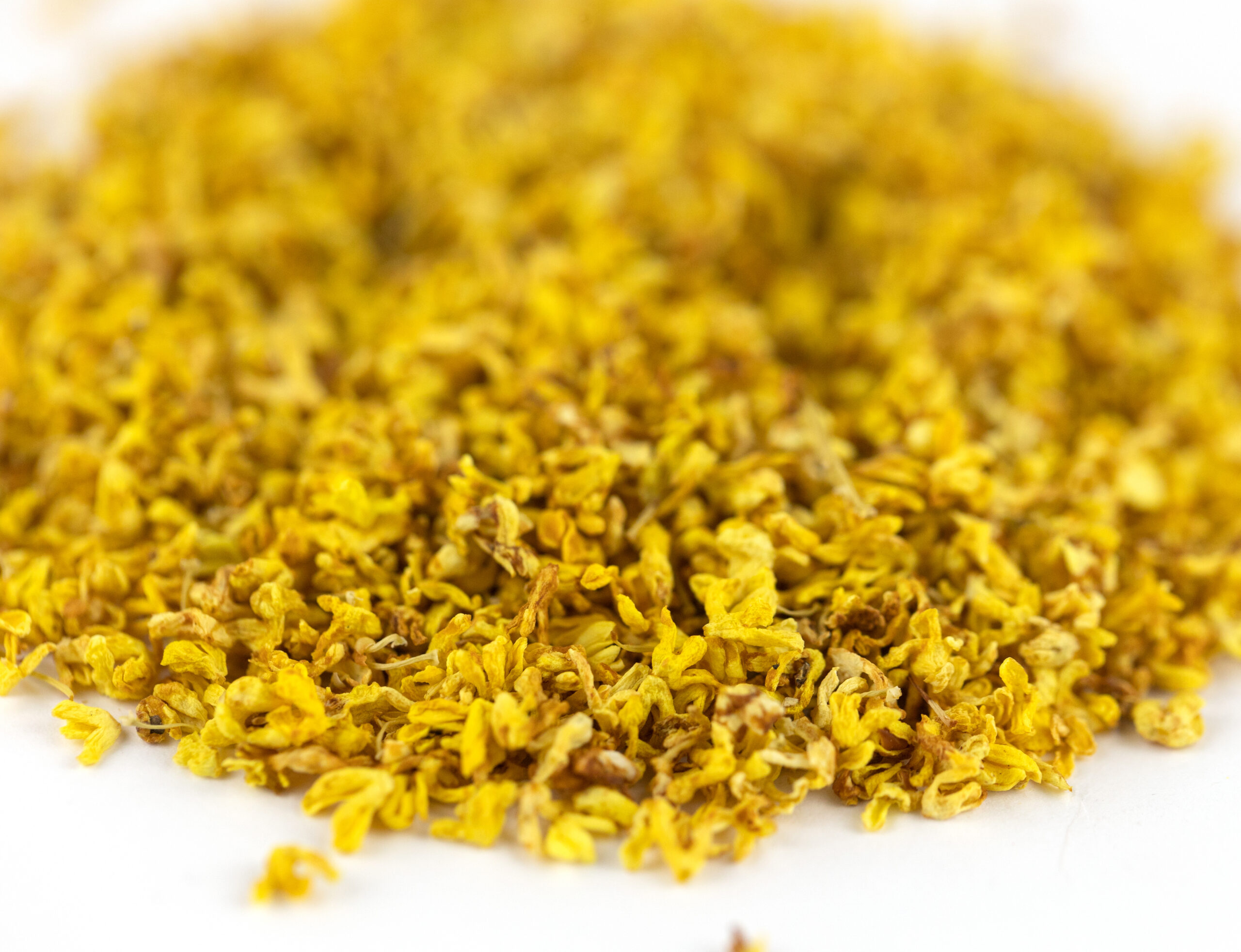 Getrocknete Osmanthus-blüten in der höchst möglichen Qualitätsstufe. Die Blüte kann als Infusion zubereitet werden, eignet sich aber auch zum Aromatisieren von Sirup und ähnlichem (wie bei dem Desert Tang Yuan). Die Duftblüte strömt ein intensives fruchtiges Parfum aus.